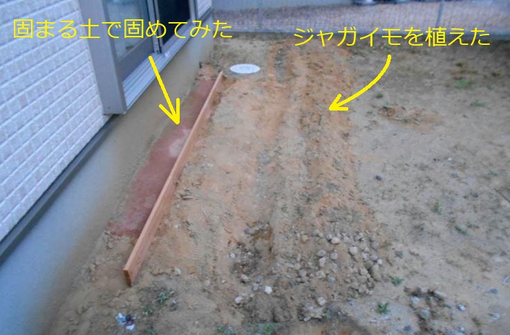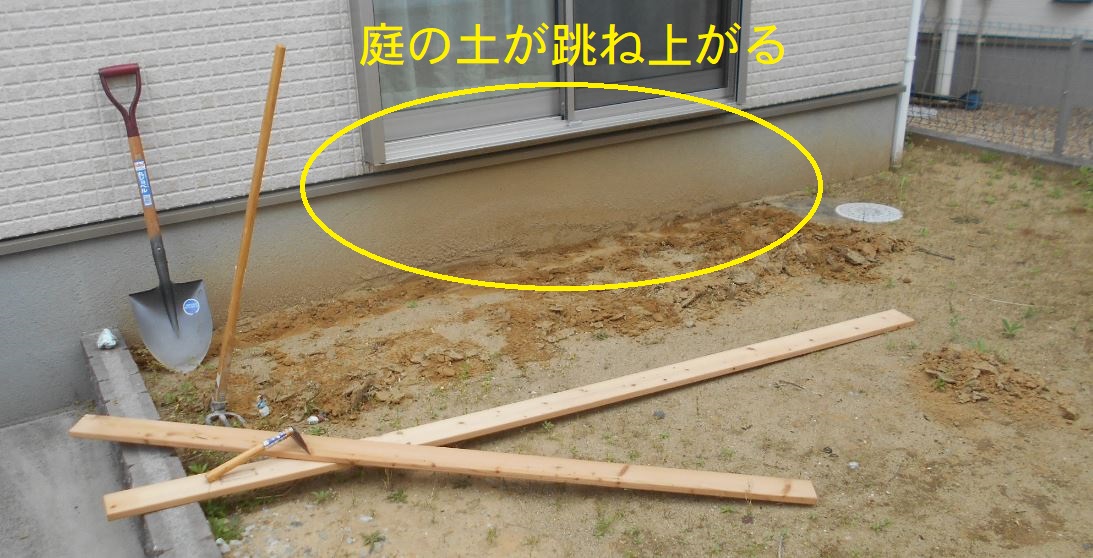 庭を掘ってみると土は5センチほどで、下はがれき?
