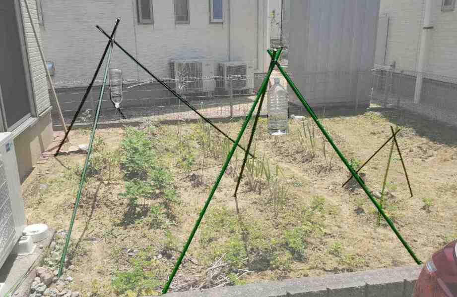 ペットボトルを追加してみた。 ジャガイモやトマトも元気。 今年は蚊が少ない。