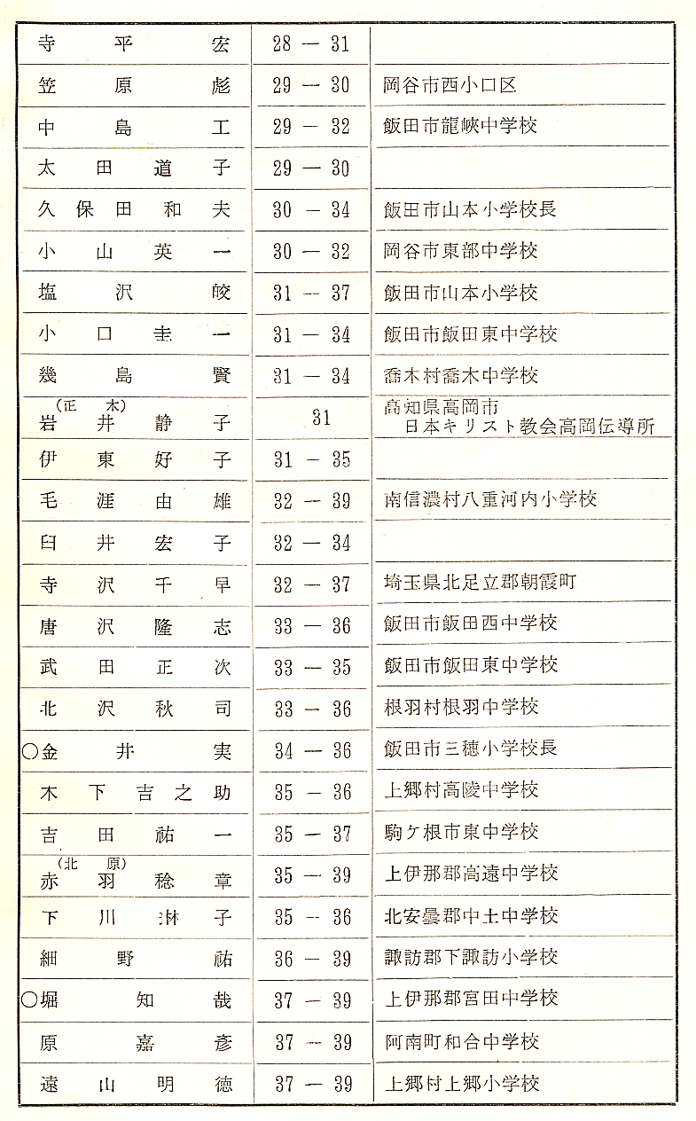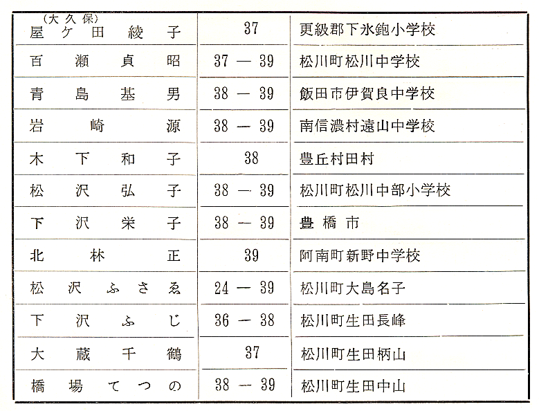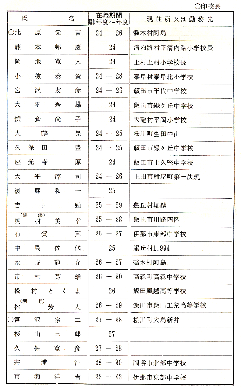 長野県下伊都郡生田村立東中学校長は東小学校長石田済美兼務
