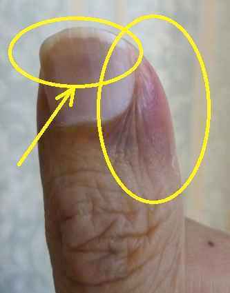 6時間ほど経過した指 →