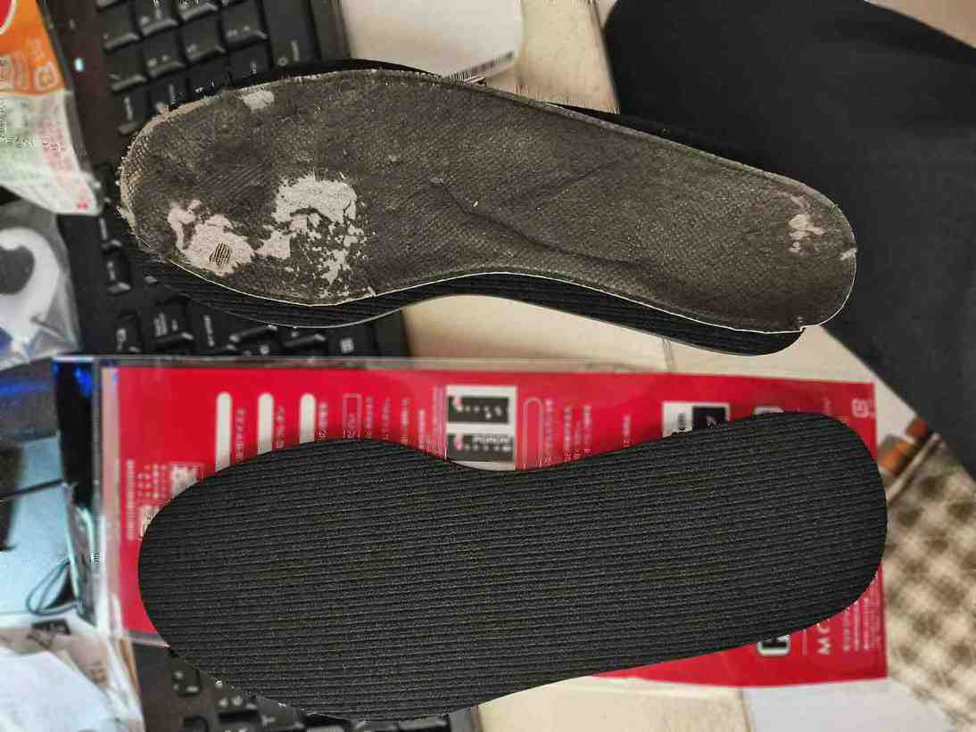 そのような物は見当たらない。 ボロボロになった古い中敷きを捨てて