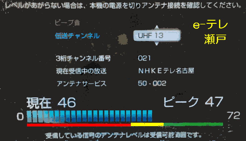 アンテナを調整したら、津よりも瀬戸の方が強くなった。 (津のほうが強かったはず)