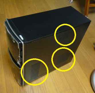 吸気口に溜まったホコリを取り除いて、さらにCPUの放熱フィンに溜まったホコリも掃除機で