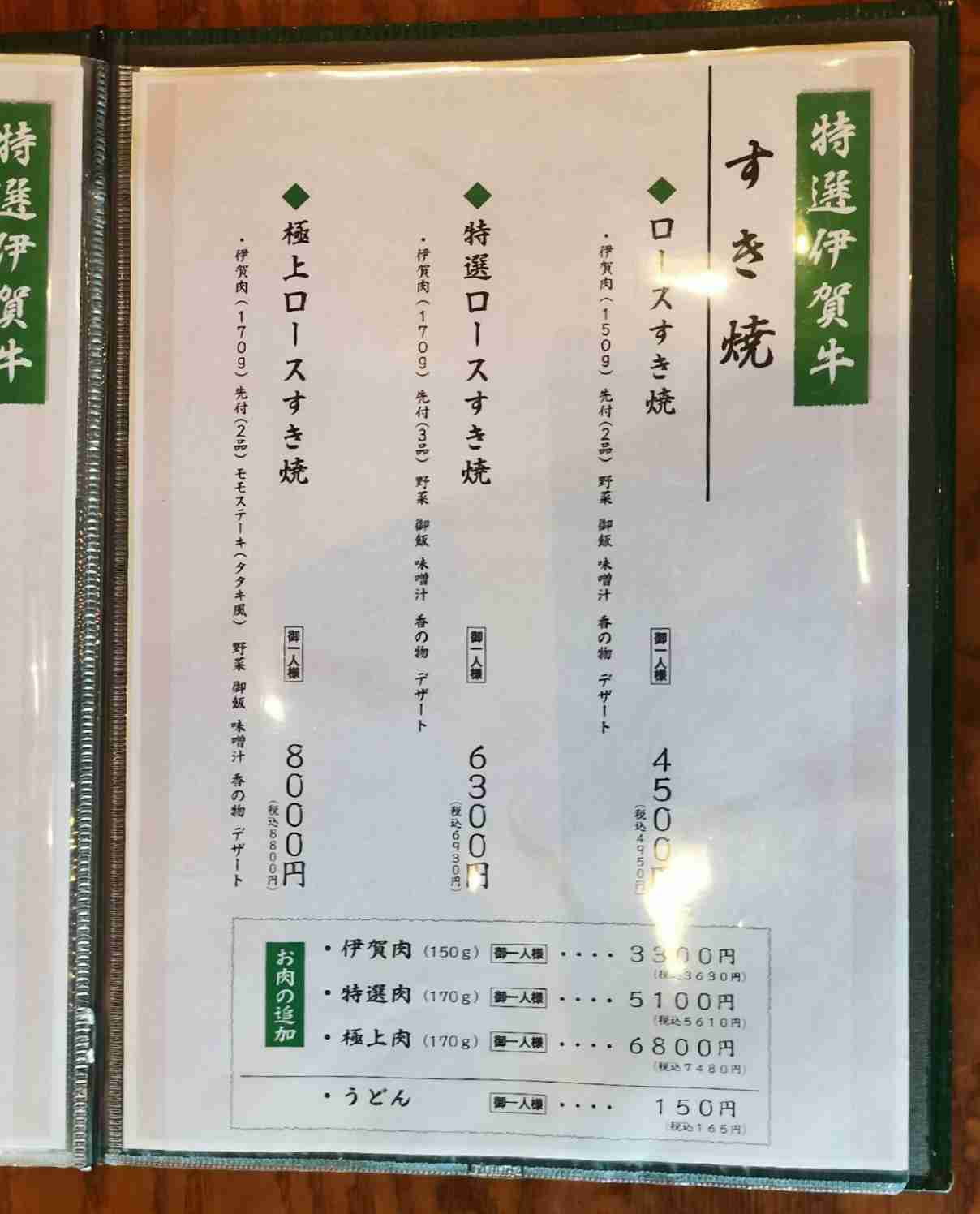 (すき焼きは1800円)