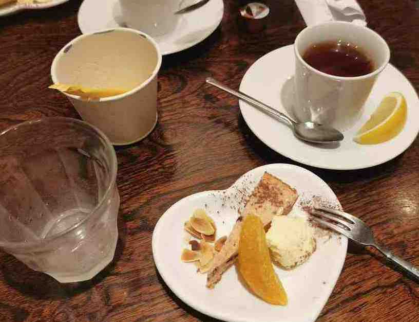 アイスクリーム、ケーキ、フルーツが載っています。