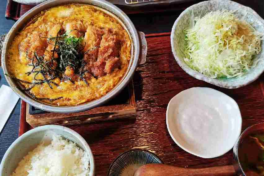 帰りに綾でランチ。 カツ鍋膳。