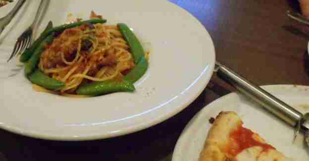 ← 前菜に続いてピザが出ます。