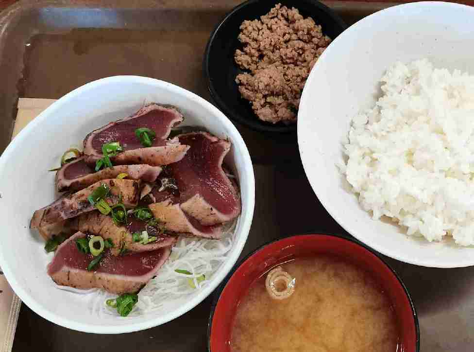 鰹のたたきを食べたが、味はイマイチ。