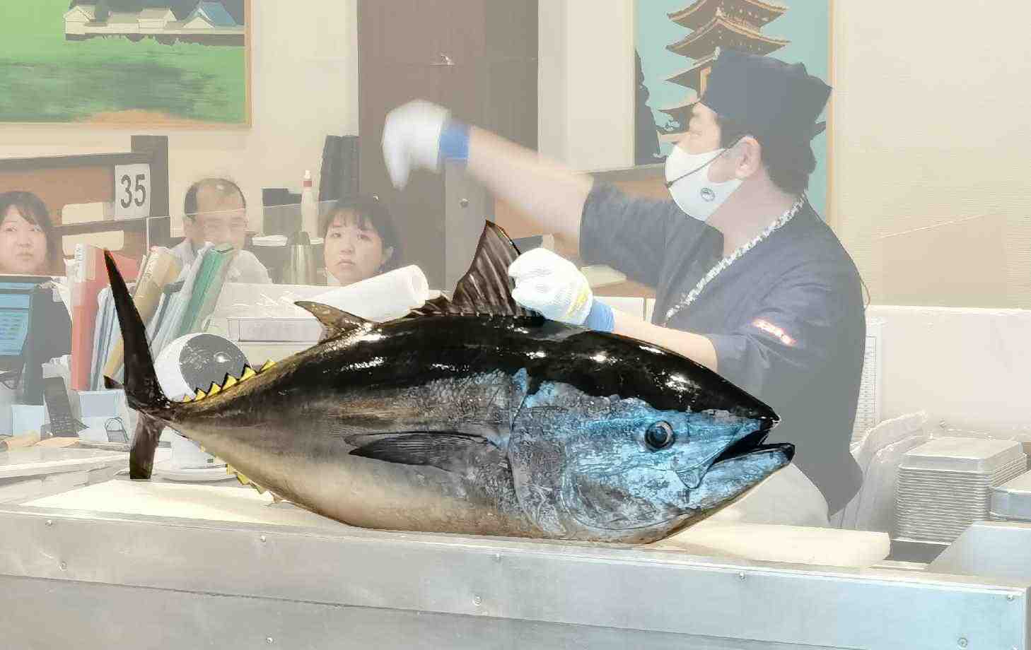 ちょうどマグロの解体ショーが始まるところだった。