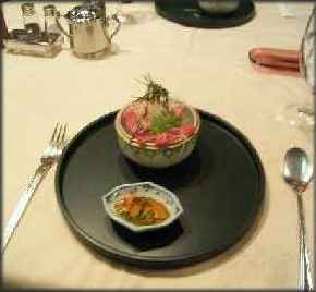 魚を選ぶと鯛のフランス風 + カニ団子?