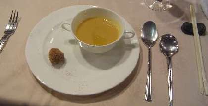 続いて野菜のスープと牛肉のコロッケ。