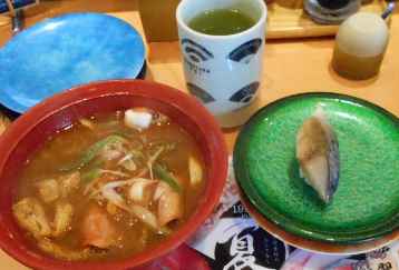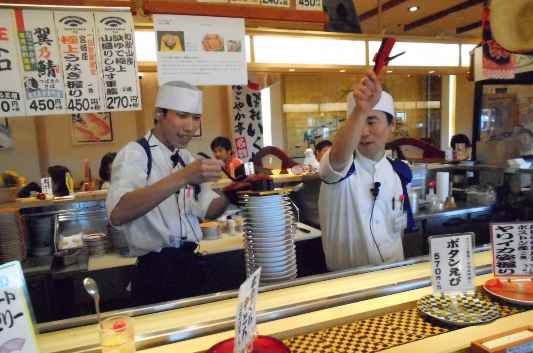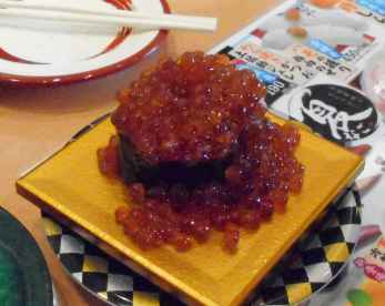 こぼれイクラを注文すると鐘と太鼓で、賑やかに、ドンドンド〜ン。
