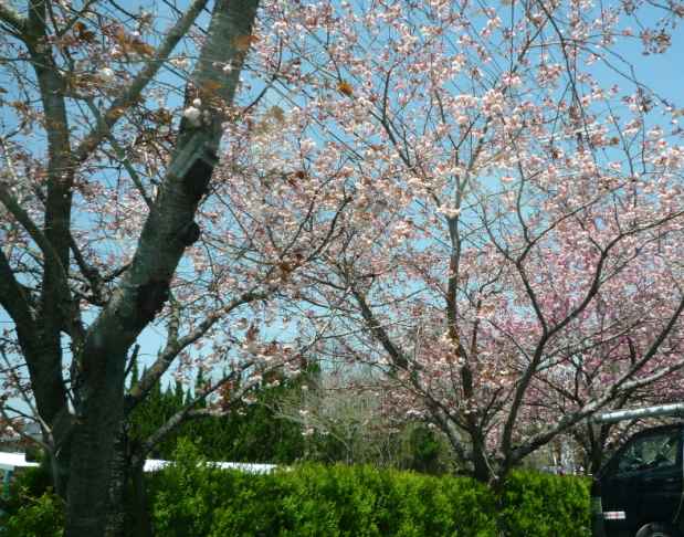 紫香楽宮跡の駅前は、この時期、八重桜が満開です。