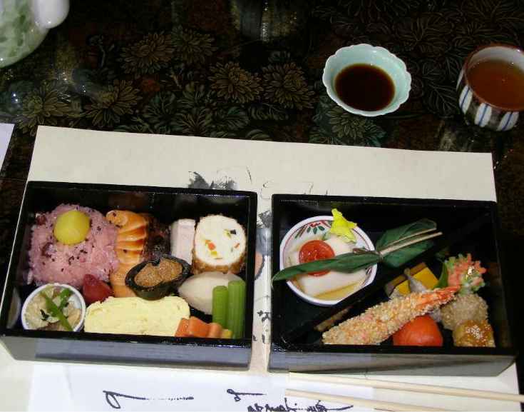 今回は美山弁当(4200円)です。 (メニューは、お弁当、懐石の2種類のみ)