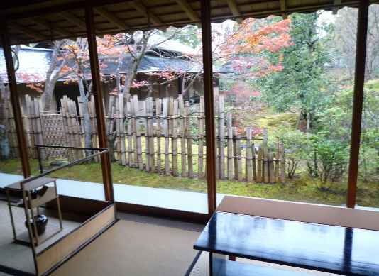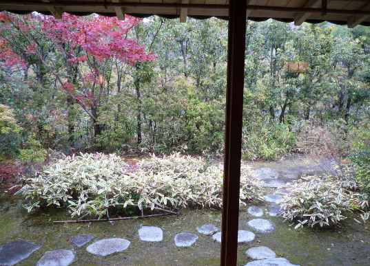 今日のお茶席は庭の紅葉を眺めながら