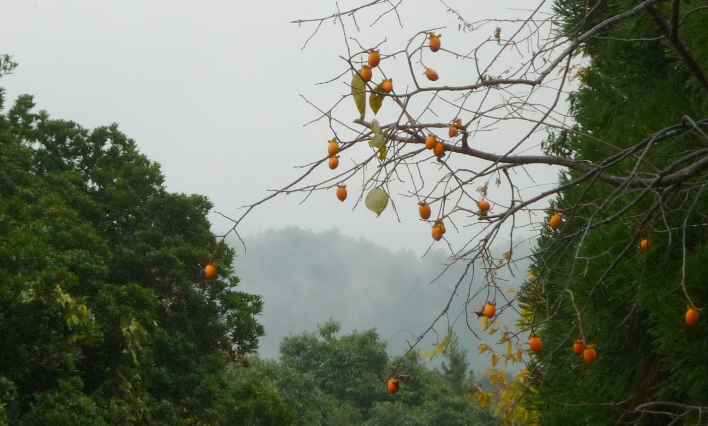 椿を飾ってみたそうです。 雨に煙る秋の1日を周囲の山と共に楽しんで