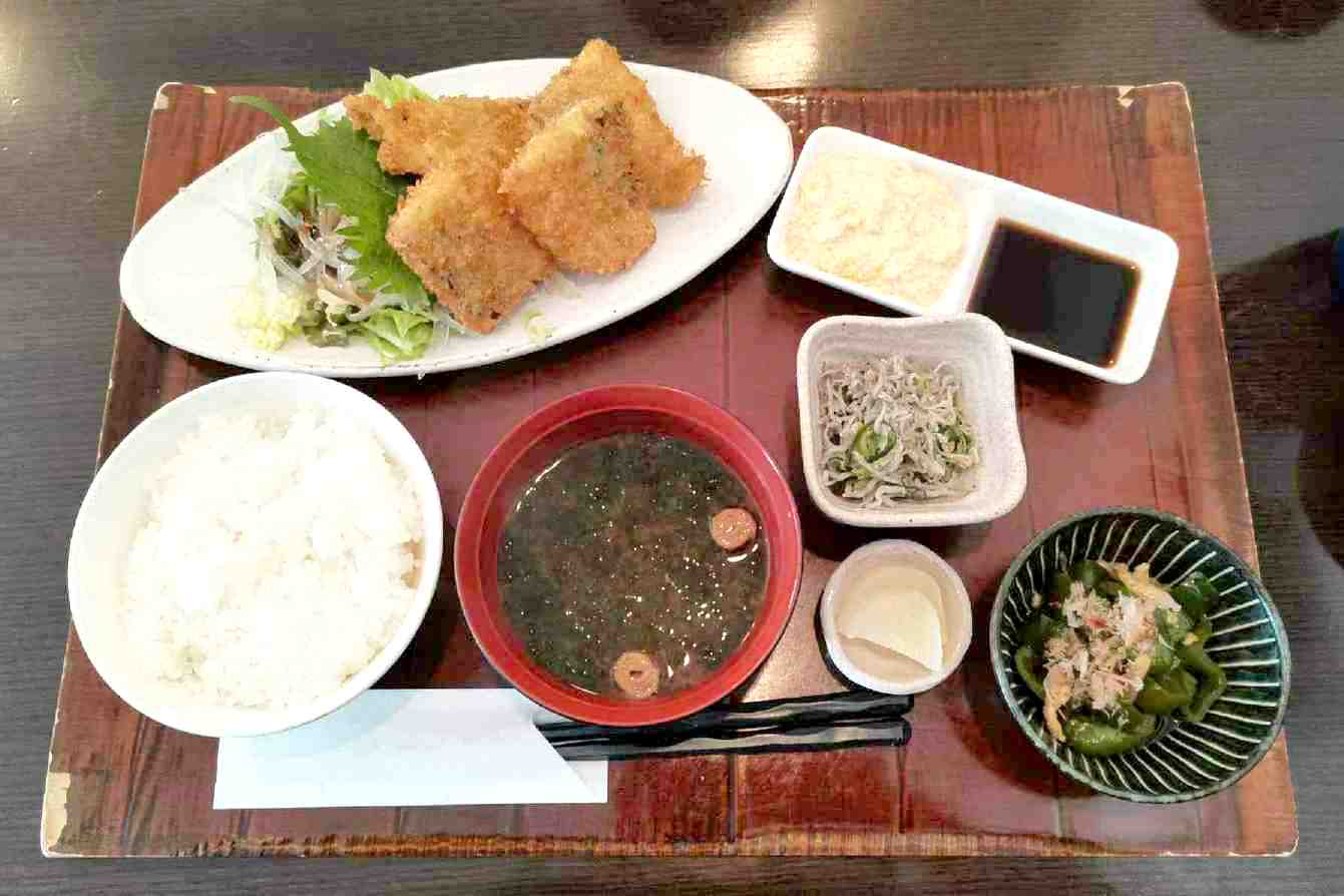 アジフライ、付け合せはピーマン。
