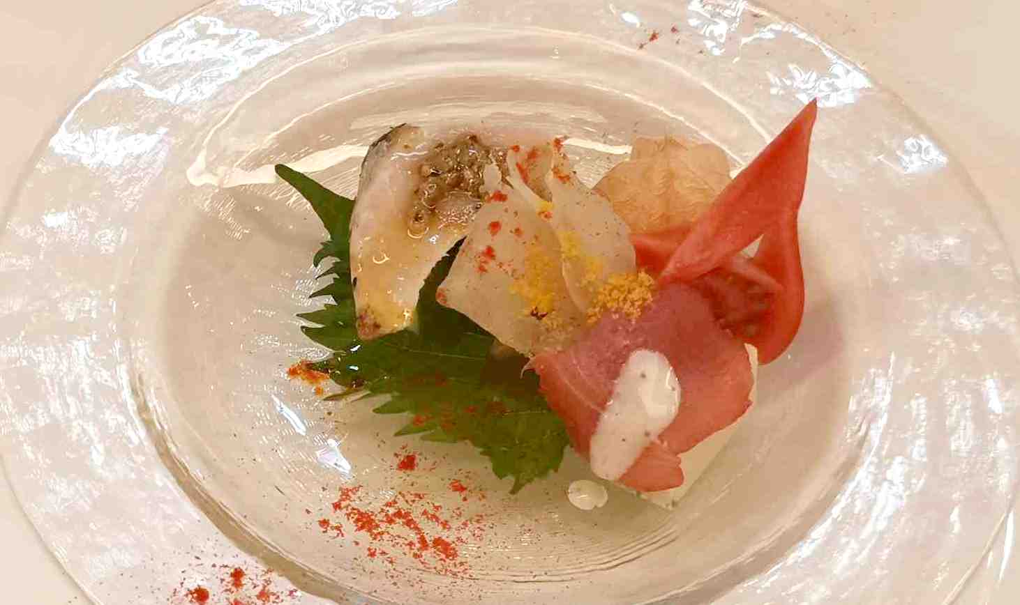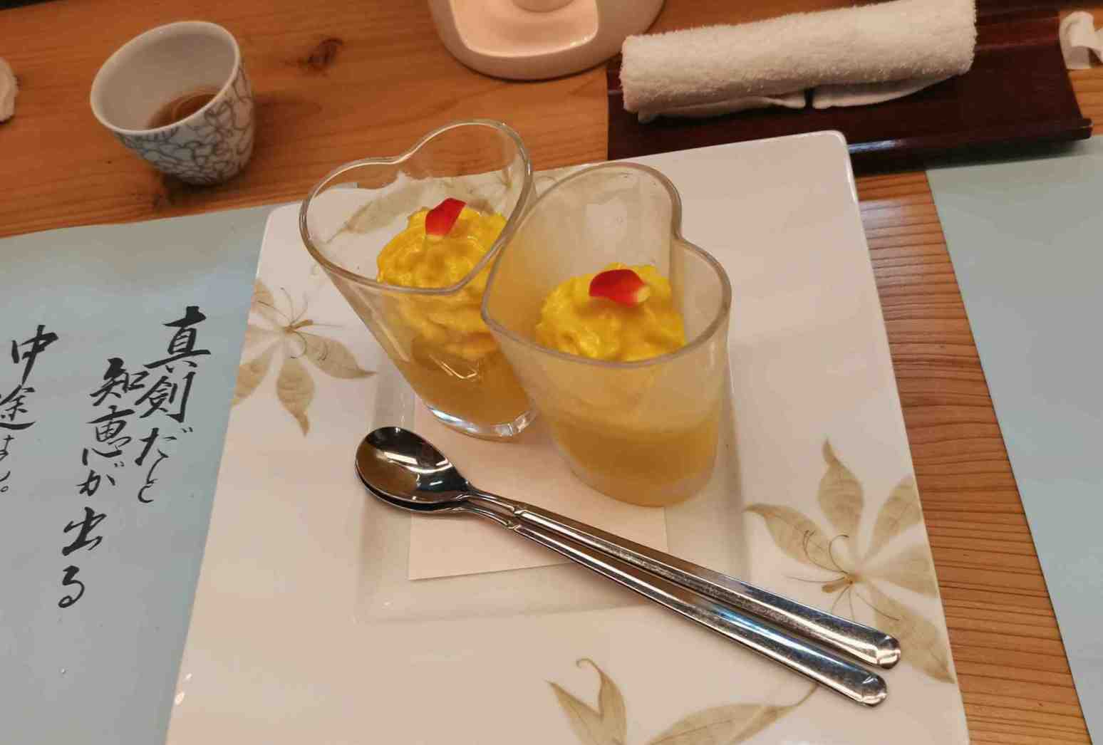 マンゴープリンの上に掛かっているムースは炭酸味。