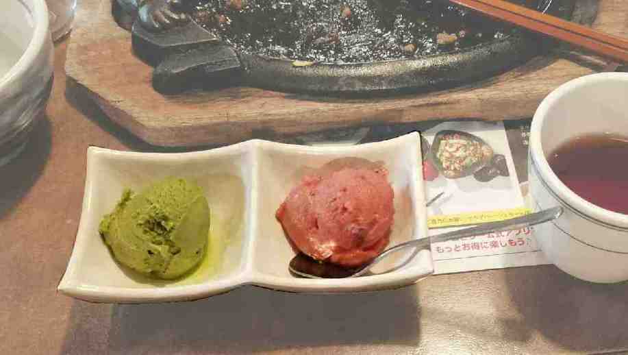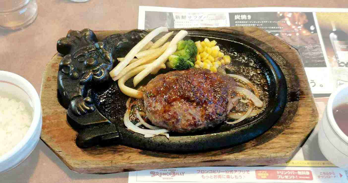 ドリンクとジェラートが無料。 ハンバーグは2種類あって、棒状の物は堅い。