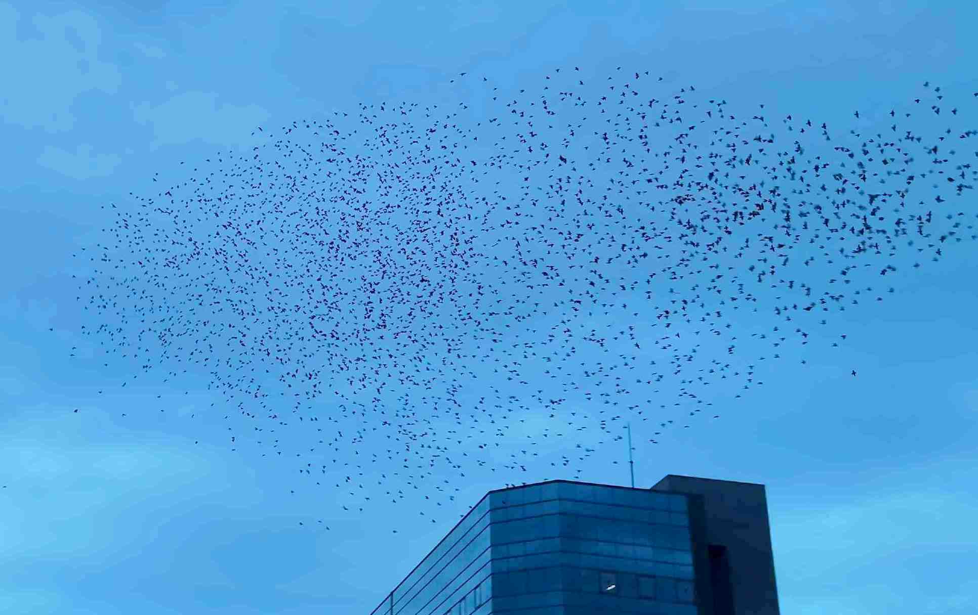 帰りに無数のムクドリ? →