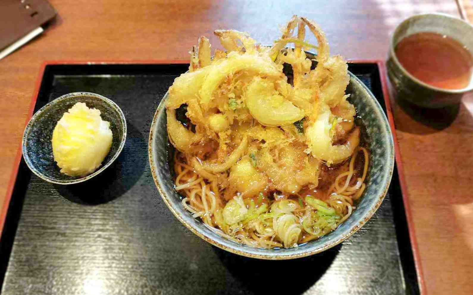 1組待ち、3分待ってテーブルに着席。 いつも通り、海鮮かきあげソバ。