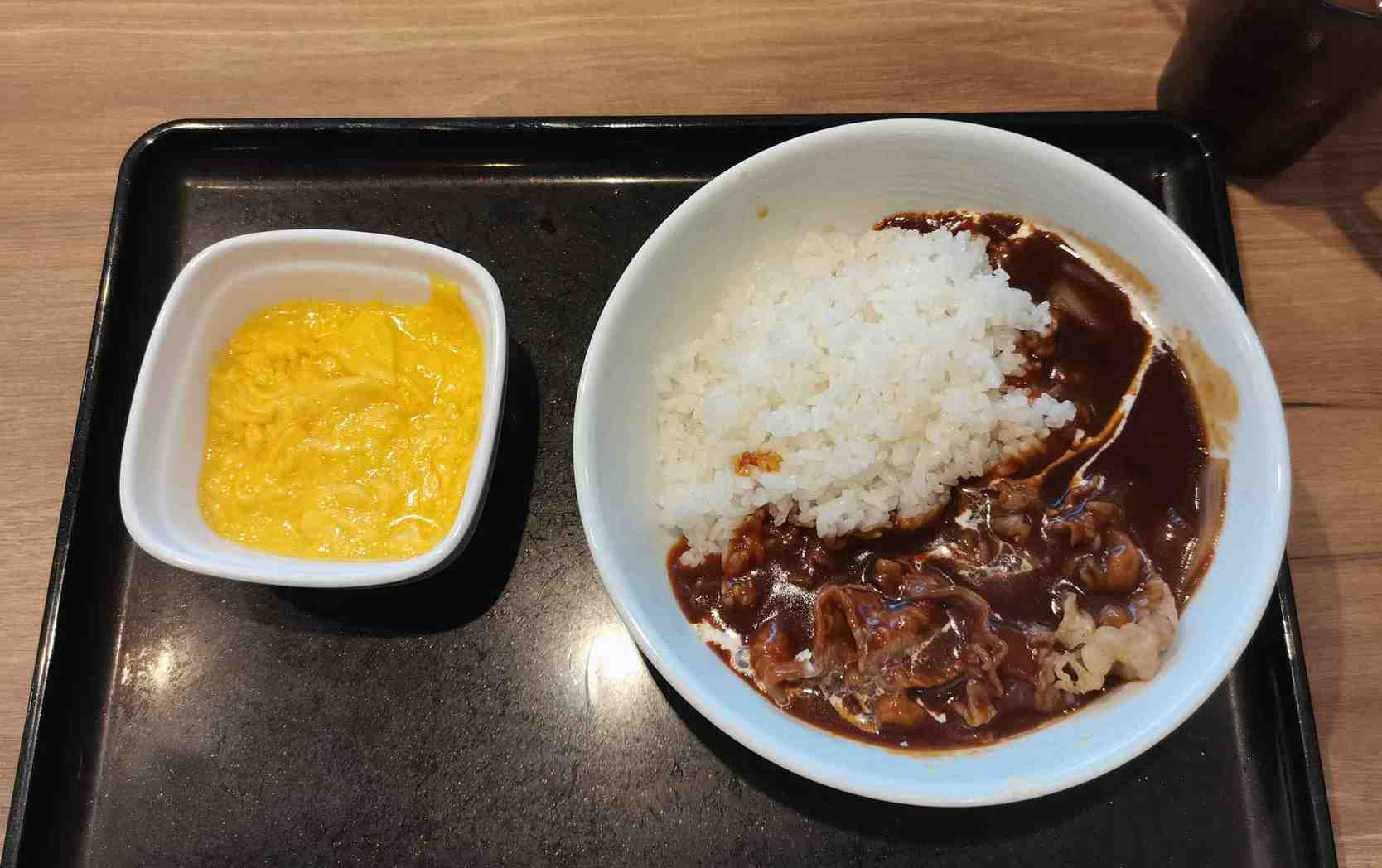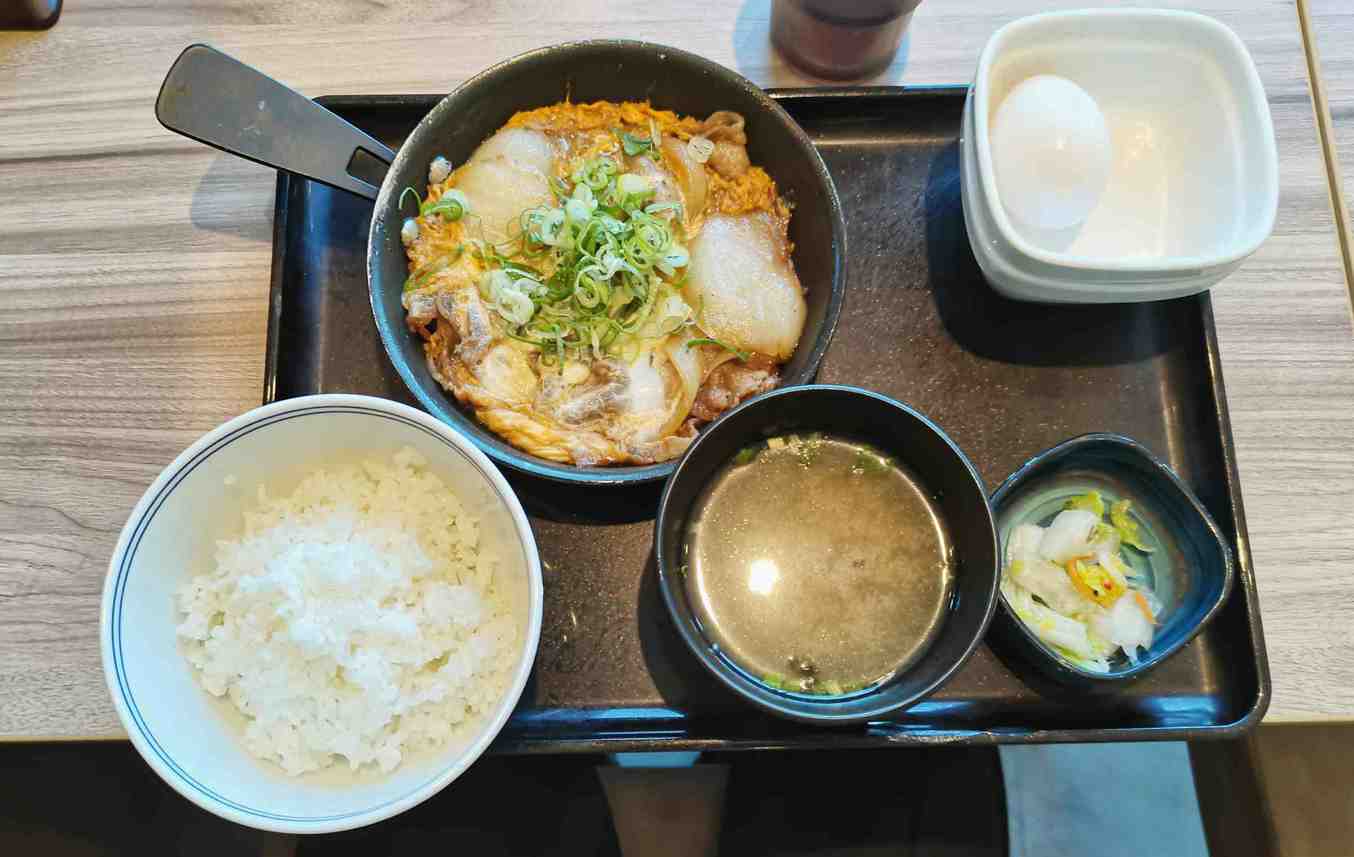 サンプルでは牛とじの上に生タマゴ