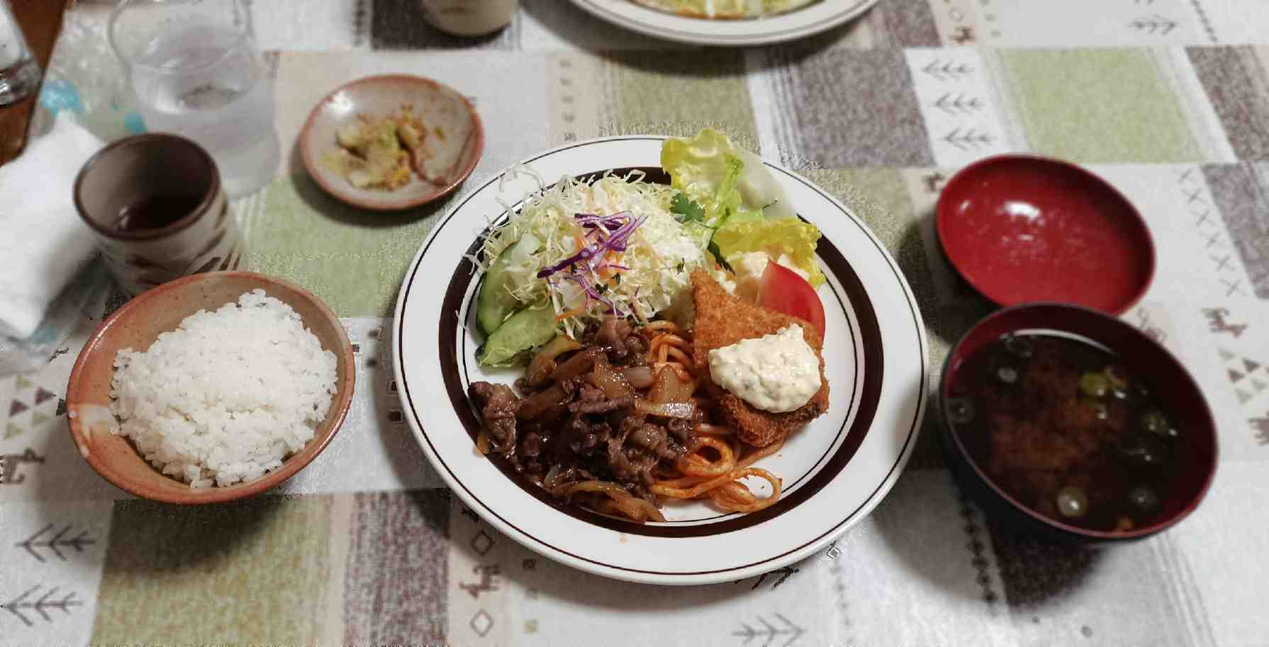 しっかりした生姜焼きと魚フライだ。