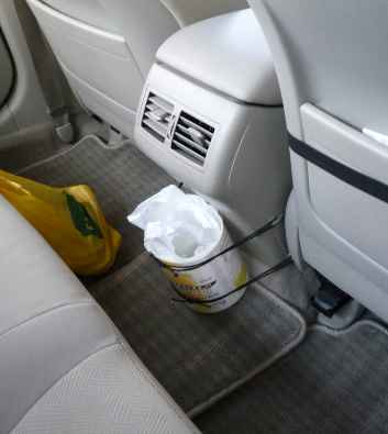 。 ゴミ箱を固定するのが目的なのだけれど、上部を固定しただけではダメだ。 車の振動で下部が動いて行き、やがて外れてしまう。