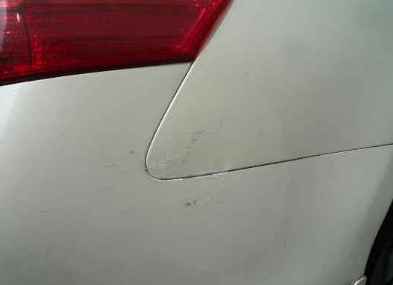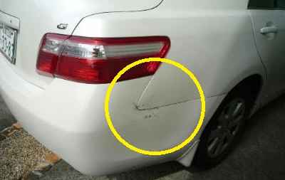 本体の金属部分と バンパーのプラスチックの部分の両方にまたがった擦り傷。