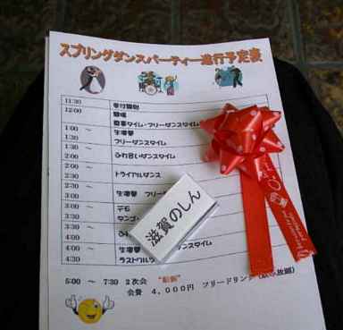 に参加しました。 12時から4時半まで、ずいぶん踊りました。 ドリカム君さんはじめ、準備をしていただいた皆さん、どうも有り難うございました。 生バンドでの踊り、3組の素晴らしいデモ、30分単位でドンドン進行するプログラム、 とどれをとっても良いパーティーだった、と思います。 お顔が写っている