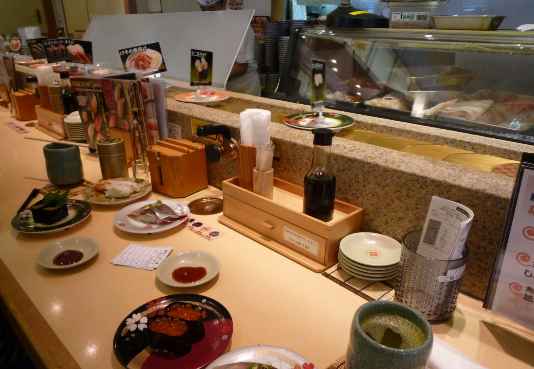 すぐ着替えて、国道8号線沿いにある回転寿司に入りました。