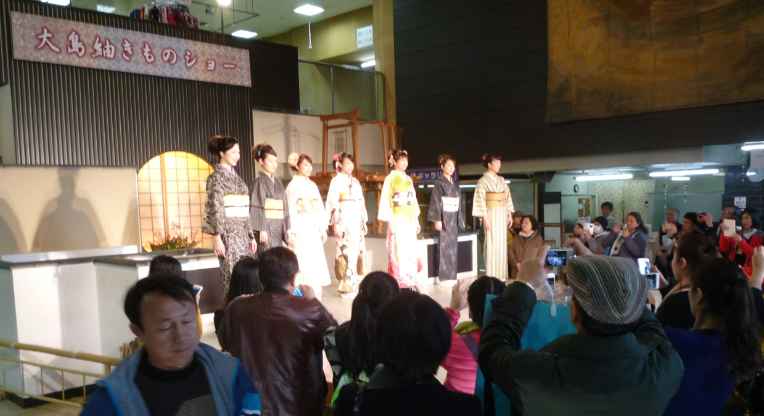 西陣織会館では、午前2回、午後も2〜3回? 着物ショーが開催されます。