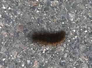 大量の毛虫が危険を冒して道路の横断をする。 半分ほどが車にひかれてしまう、と思う。