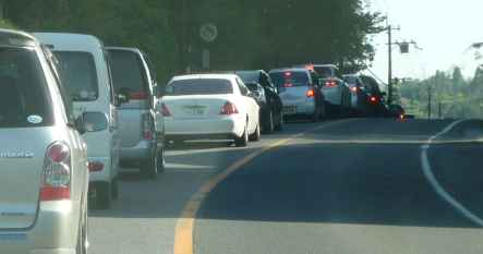 渋滞というほどではないけれど、車は多い。