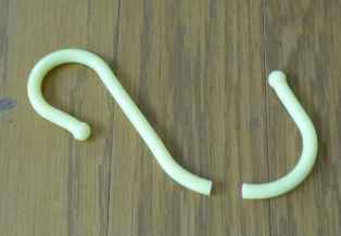 プラスチック製のS字フックは時間の経過で壊れます。