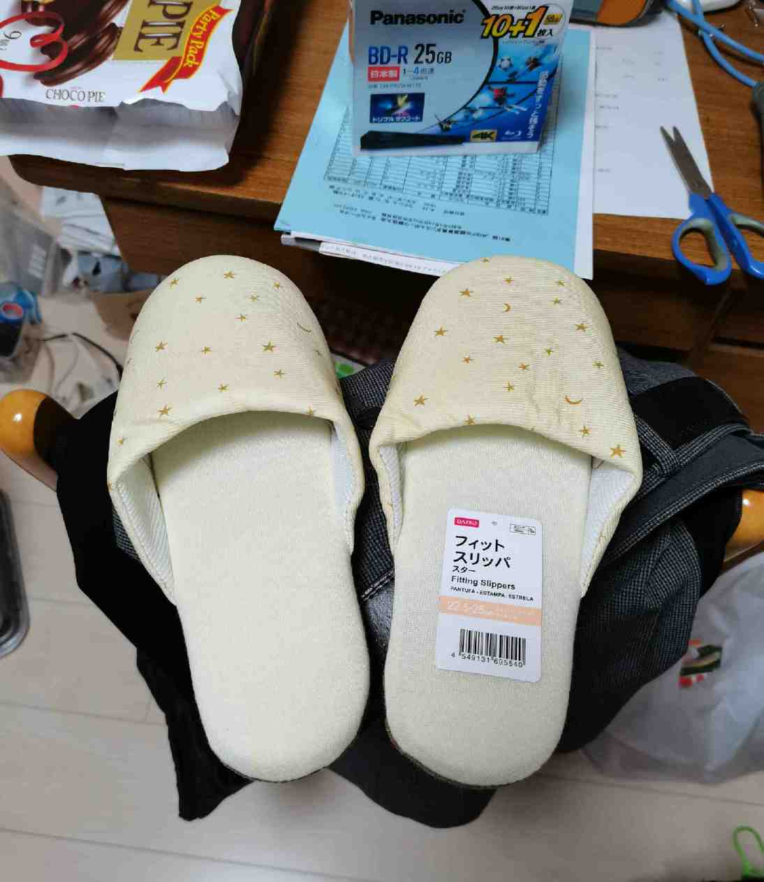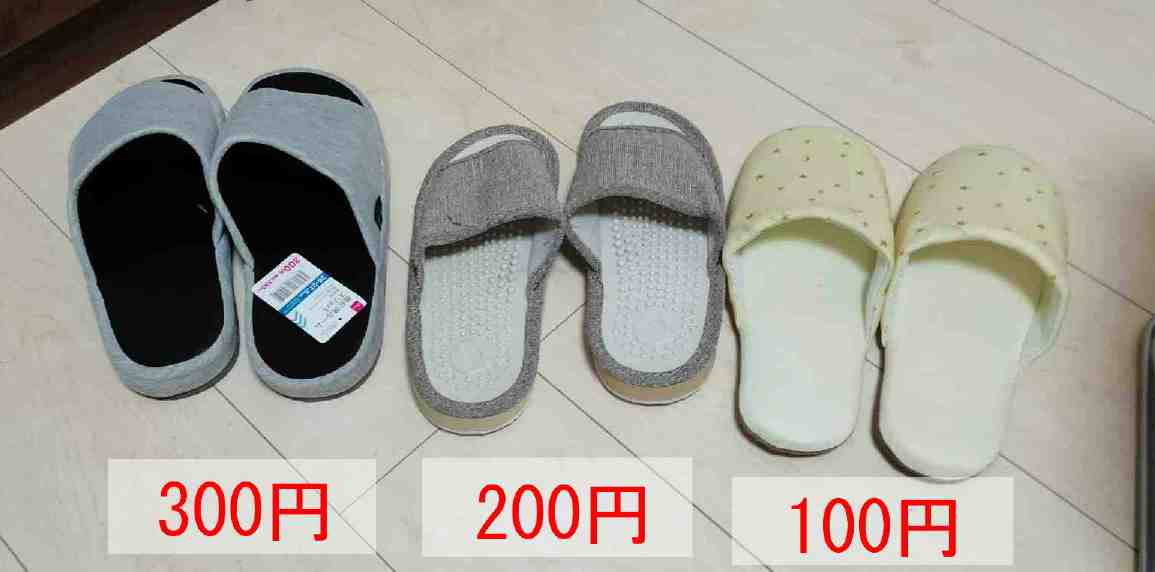 続いて、泊イオンのダイソーで 300円のスリッパを調達。
