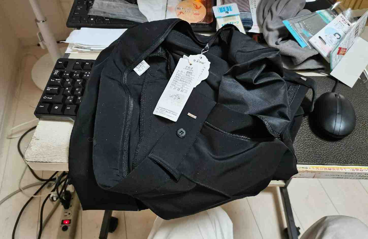裾上げテープで丈を合わせた。 そのまま履くと長い。 ウエストが落ちる。