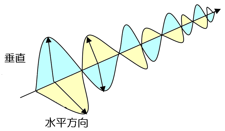 垂直方向に磁力が変化し、水平方向に電気 (電界と言います) が発生すると、図のようになり、