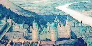 城の周囲から町を見下ろしたあと、城の門をくぐって、 城の中へ入って行きます。
