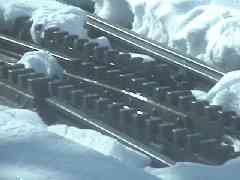 グルンデで外を見ると、左の写真の様にレールの間にラックと言う歯車が見えます。電車はこの歯車を使って、急な斜面を、まるで階段を登るように登って行くのです。