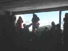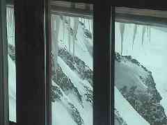 この駅で5分停車します。乗客は全員降りて、アイガー北壁にポッカリと開けられた穴から外を見ています。グリンデルワルトの村は足元にあるのですが、近過ぎて見えません。おそらく、真下を見られるなら始発駅が見えるんでしょうねぇ。駅からここまでは1500m以上の標高差があるはずです。駅の海抜は3000m、空気が薄くなり、みなさん高山病でふらふらしている様です。こういう時は飴をなめるなど甘い物を食べると一時的に血中糖度が上昇して症状が緩和されるそうです。私は甘いクッキーを食べて頑張ります。