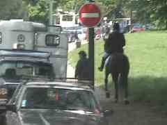 森をパトロールするお巡りさんは馬でパトロールしています。