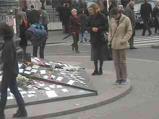 帰り道に、ダイアナさんが亡くなった場所を通りました。右にエッフェル塔があり、エッフェル塔から西へセーヌを渡ると川沿いにその場所があります。亡くなったのはこの下を通るトンネルです。ここは立体交差となっており左右はセーヌを渡る橋で、この下はセーヌ川の川岸を走る道です。多くの人のメッセージや花束などが置いてあります。