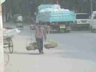 『天秤棒で荷物を担いでいる人』