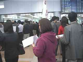 ちょっと心配になっていると女性の係員が、なんとなく担当らしい風なので、この人の後ろで待ちます。