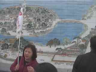 北海公園の入り口で、人造湖の中央に作った島をバックに記念撮影