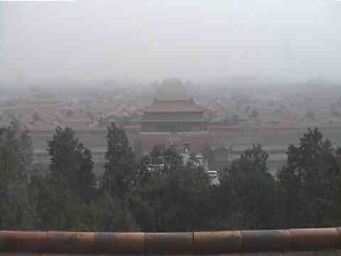 山の上から南へ広がる北京市内を見下ろすと、黄砂に煙る街の中に故宮を見下ろす事が出来ます。