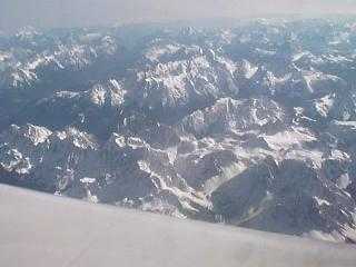 すると飛行機の右側にスイスアルプスが、左側には遠くヒマラヤらしい山並みが見えはじめました。