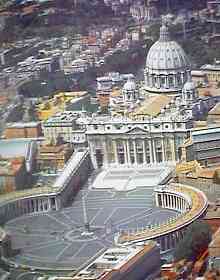 世界最大の教会、サンピエトロ寺院とその手前の巨大な円形広場です。円形広場の真ん中に塔が立っています。この手前で写した写真はすでにご覧になられたと思います。
