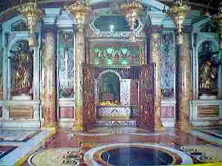寺院中央にあるペテロの墓までは降りてゆけないので上からのぞくだけです。この写真は墓を正面から写しています、従ってこの写真は一般の見学者には撮ることが出来ません。